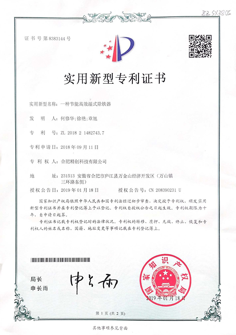 (2019實用新型)一種節(jié)能高效濕式除鐵器
